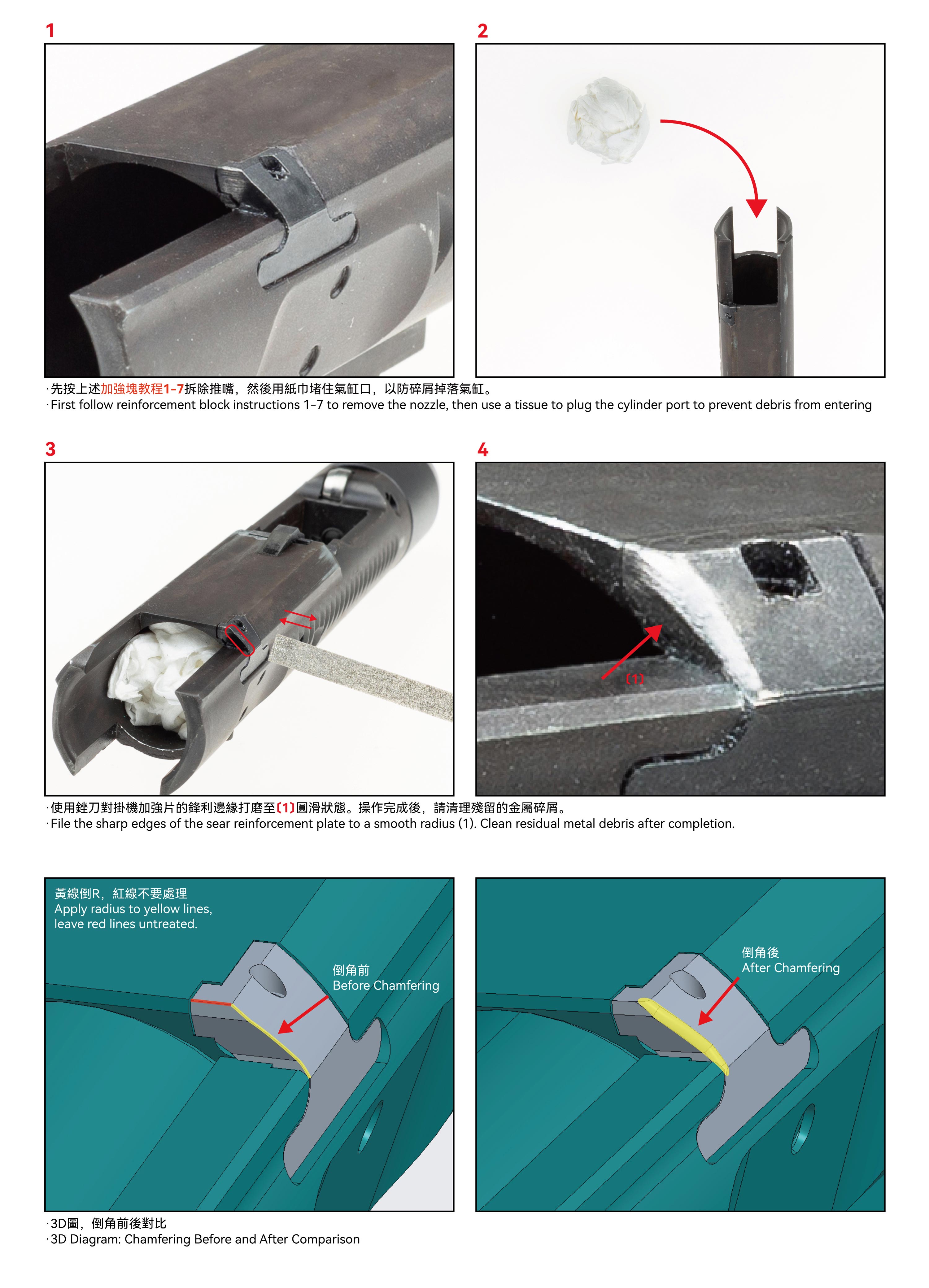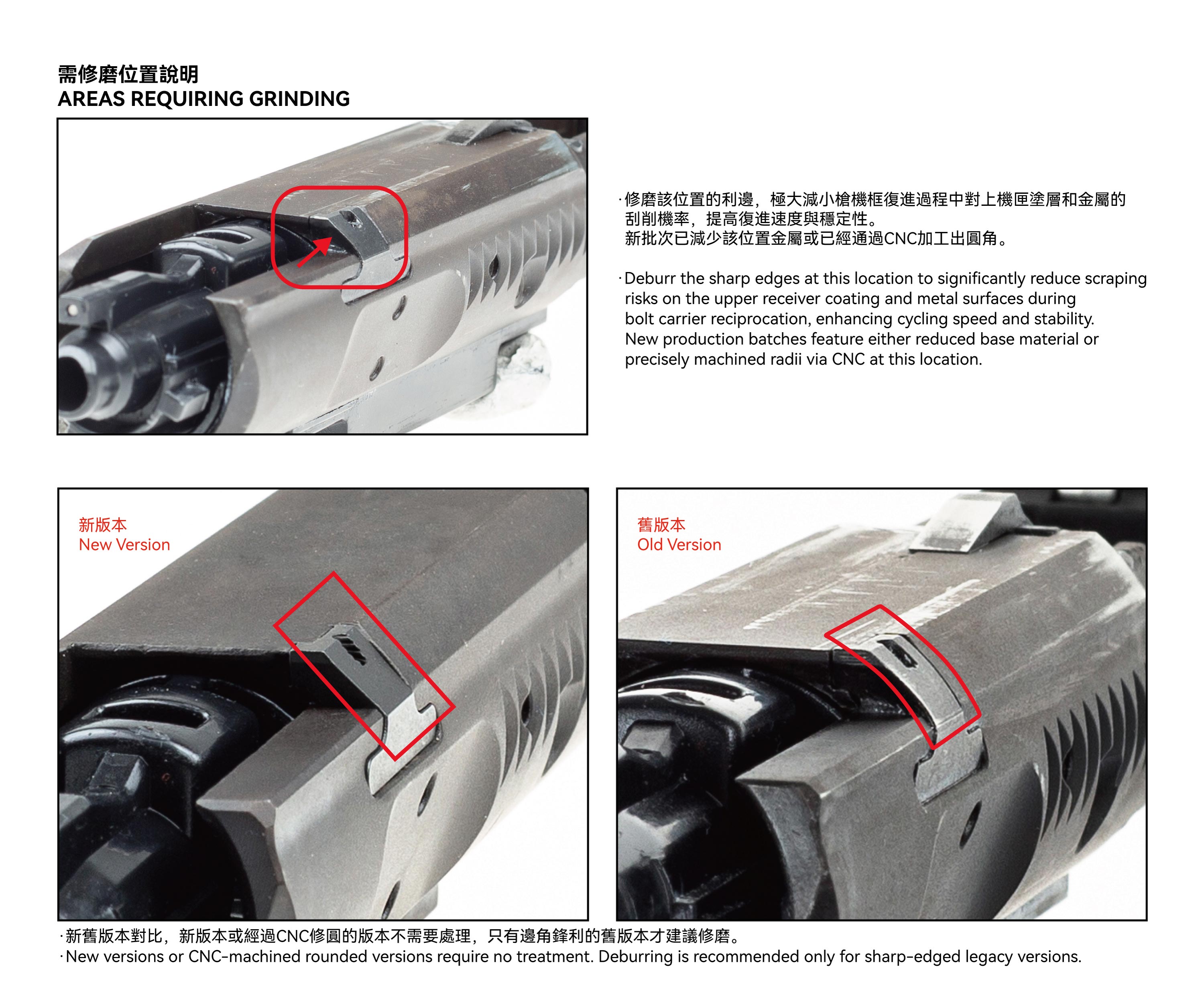 GM MWS AR/A5 Stability Enhancement Kit (GM0614) with Tolerance Tuning Guide — 槍機或整槍穩定性提升組件(GM0614)及相關需修磨位置說明